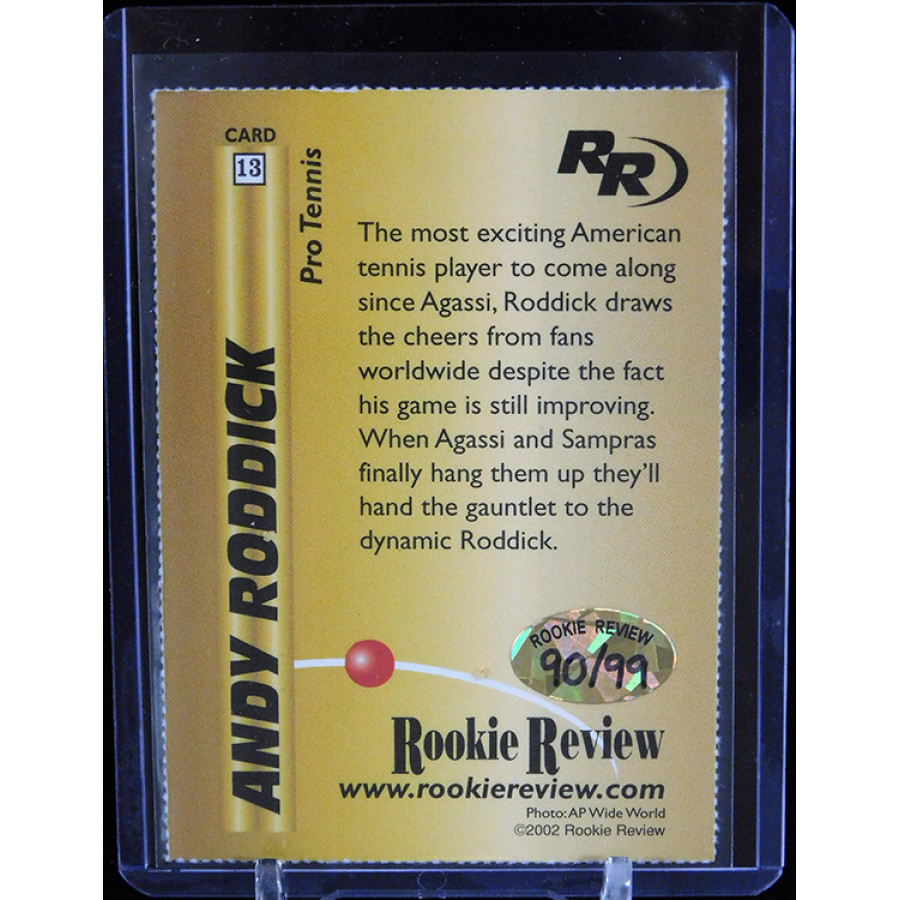 Andy Roddick 2002 Premiere Rookie Review Card #13. This is numbered out of 99.
