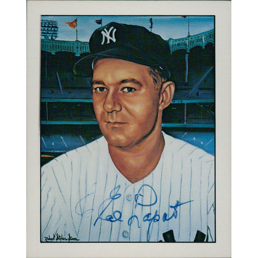 Signed Ed Lopat New York Yankees 1983 TCMA 50 Years of Yankee All Stars Oversized 3x3.75 Baseball Card #24 in blue sharpie. This item is certified by James Spence Authentication (JSA) with sticker affixed to item and matching card.
