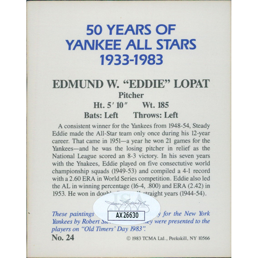 Ed Lopat Signed 1983 TCMA 50 Years of Yankee All Stars Card #24 JSA Authentic