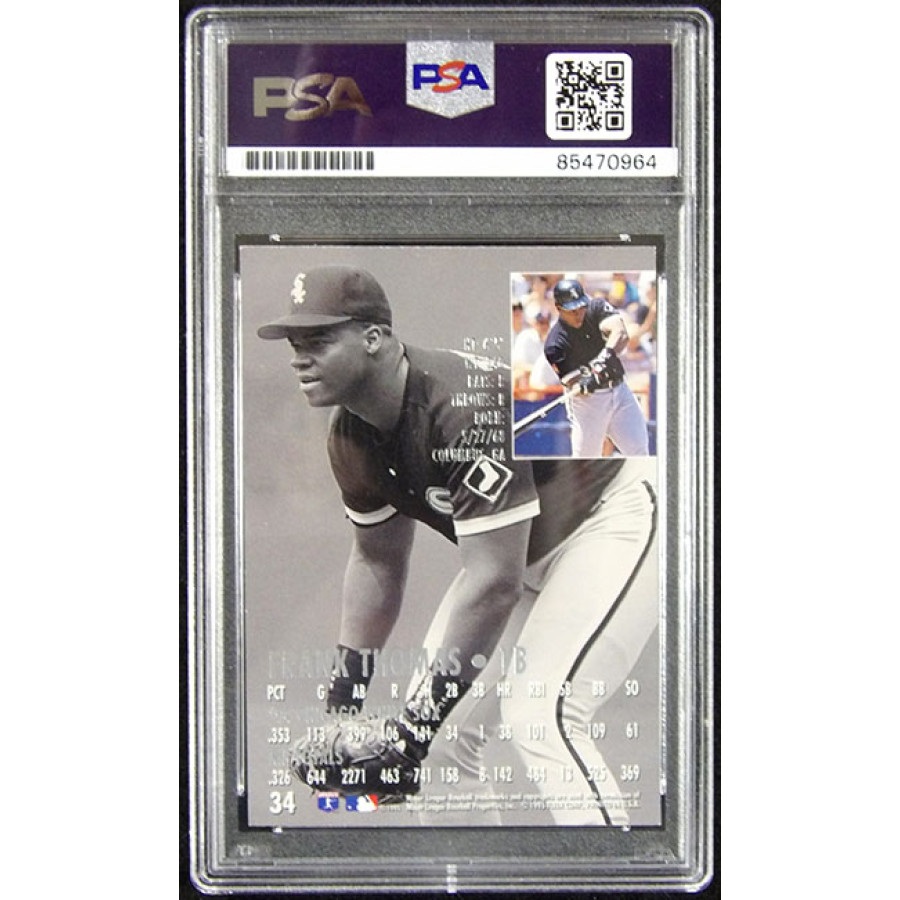 Signed Frank Thomas Chicago White Sox 1995 Fleer Ultra Baseball Card #34 in blue sharpie. This item is certified by Professional Sports Authenticator (PSA) encapsulated.