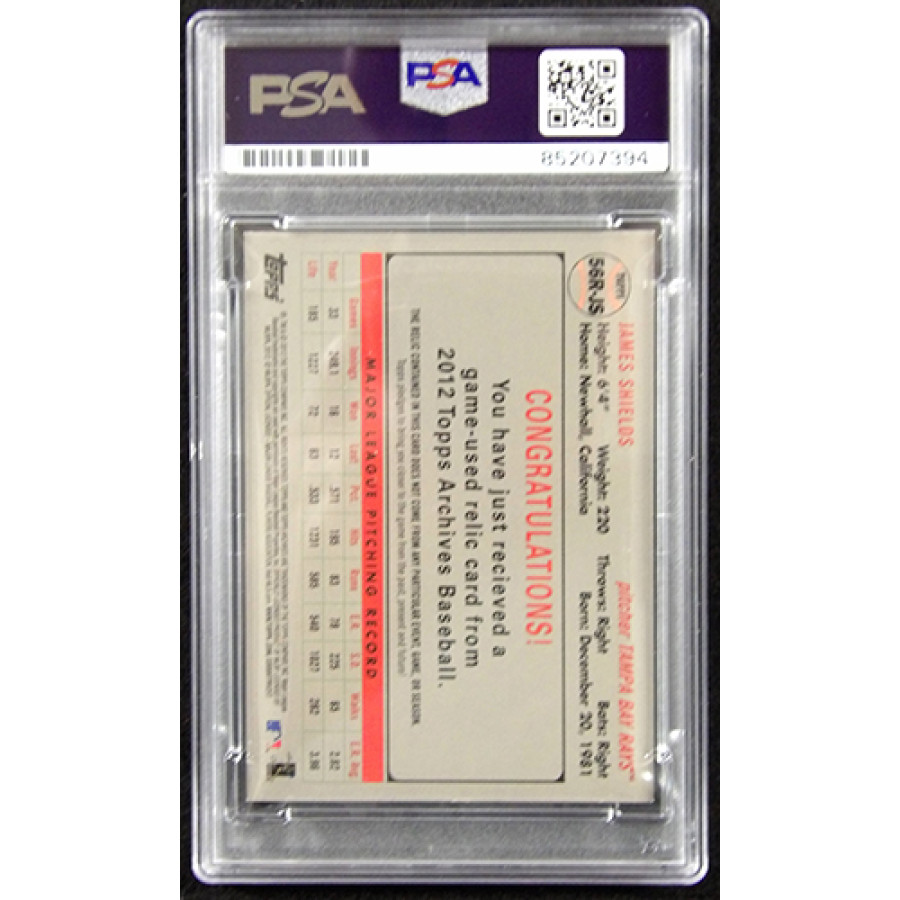Signed James Shields Tampa Bay Devil Rays 2012 Topps Archives relic baseball card #56R-JS in blue sharpie. This item is certified by Professional Sports Authenticator (PSA) encapsulated.