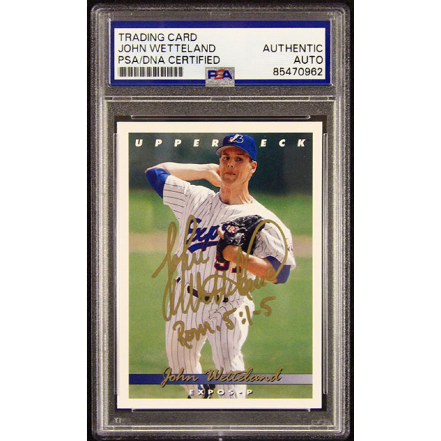 Signed John Wetteland Montreal Expos 1992 Upper Deck Baseball Card #392 in gold ink. This item is certified by Professional Sports Authenticator (PSA) encapsulated.