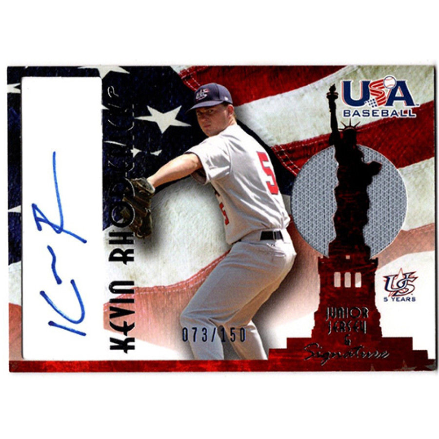 Signed Kevin Rhoderick 2007 USA Baseball Junior Jersey and Signature baseball card #AJ-36. This is numbered 73 of 150.