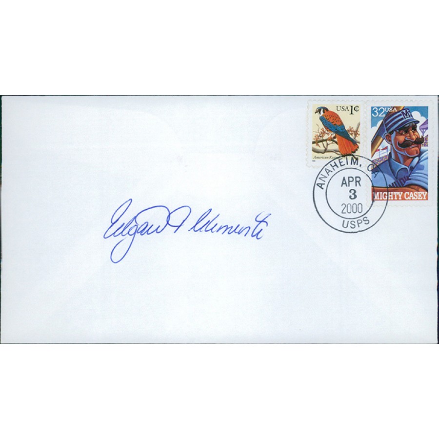 Signed Edgard Clemente Mighty Casey Stamped Envelope Cachet in blue pen. This item has been certified by James Spence Authentication (JSA) with sticker on item and matching card.