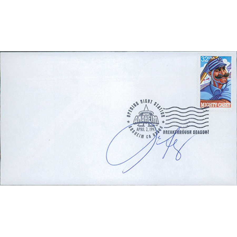 Signed Luis Alizea Anaheim Angels Mighty Casey Stamped Cachet in blue pen. This item has been certified by James Spence Authentication (JSA) with sticker on item and matching card.