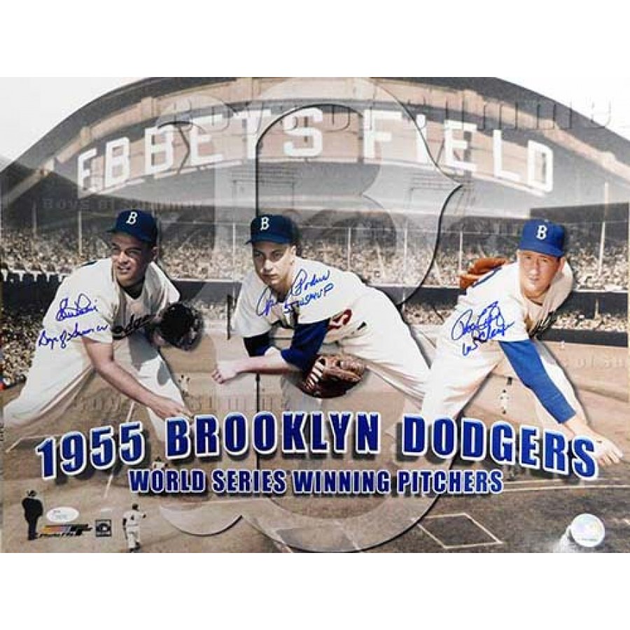 1955 Brooklyn Dodgers Clem Labine/Johnny Podres/Roger Craig Signed 16x20 JSA Authenticated