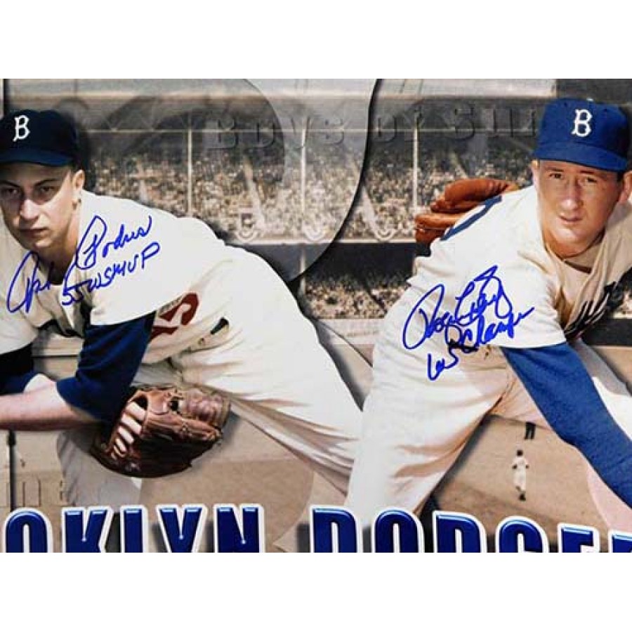 Brooklyn Dodgers signed 16x20 glossy photo by Clem Labine, Johnny Podres and Roger Craig in blue sharpie. This autograph has been certified by James Spence Authentication (JSA) with sticker on item and matching cert. The photo does have some minor scratches and dings on it.