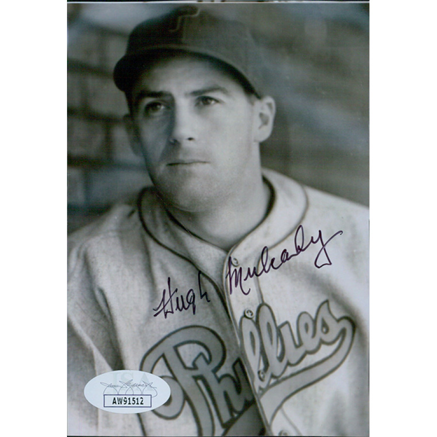 Signed Hugh Mulcahy Philadelphia Phillies 3.5x5 glossy finish photo in black ink. This item has been certified by James Spence Authentication (JSA) and will come with a sticker on the item and matching card.