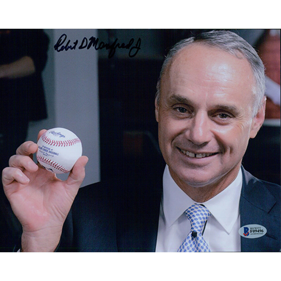 Signed Major League Baseball Commissioner Robert D Manfred Jr. 8x10 Matte photo in black sharpie. This item has been certified by Beckett Authentication (BAS) and will come with a sticker on the item and matching card.