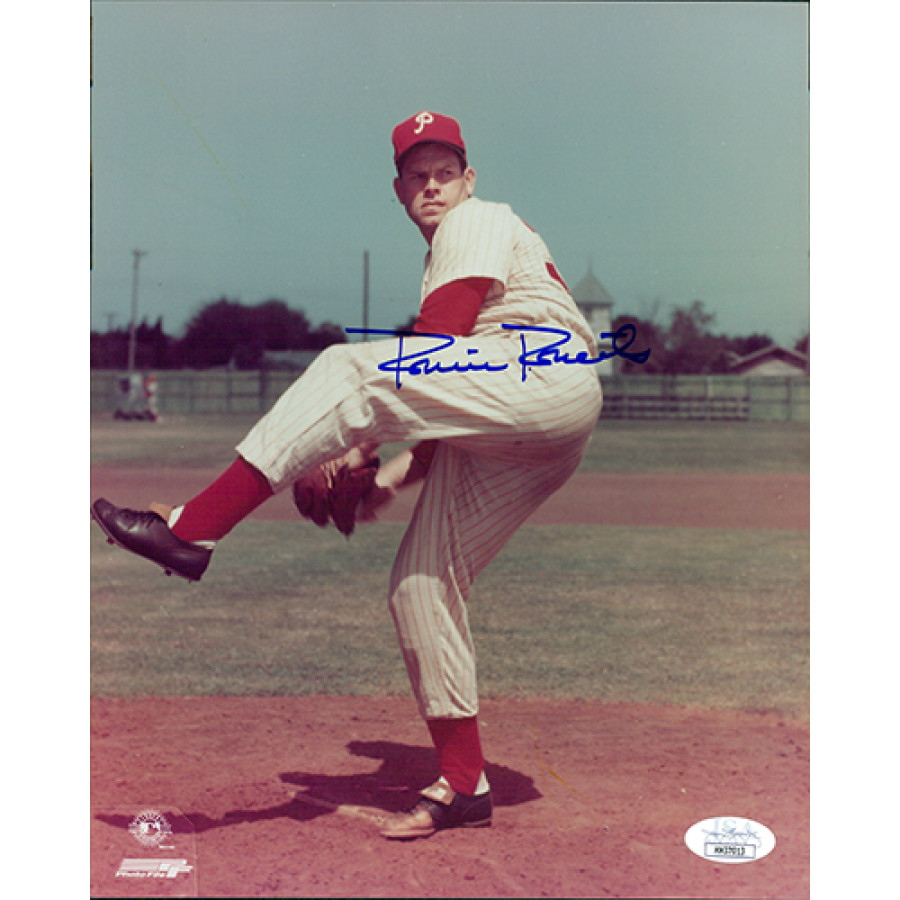 Signed Robin Roberts Philadelphia Phillies 8x10 glossy photo in blue sharpie. This item has been certified by James Spence Authentication (JSA) and will come with a sticker on the item and matching card.