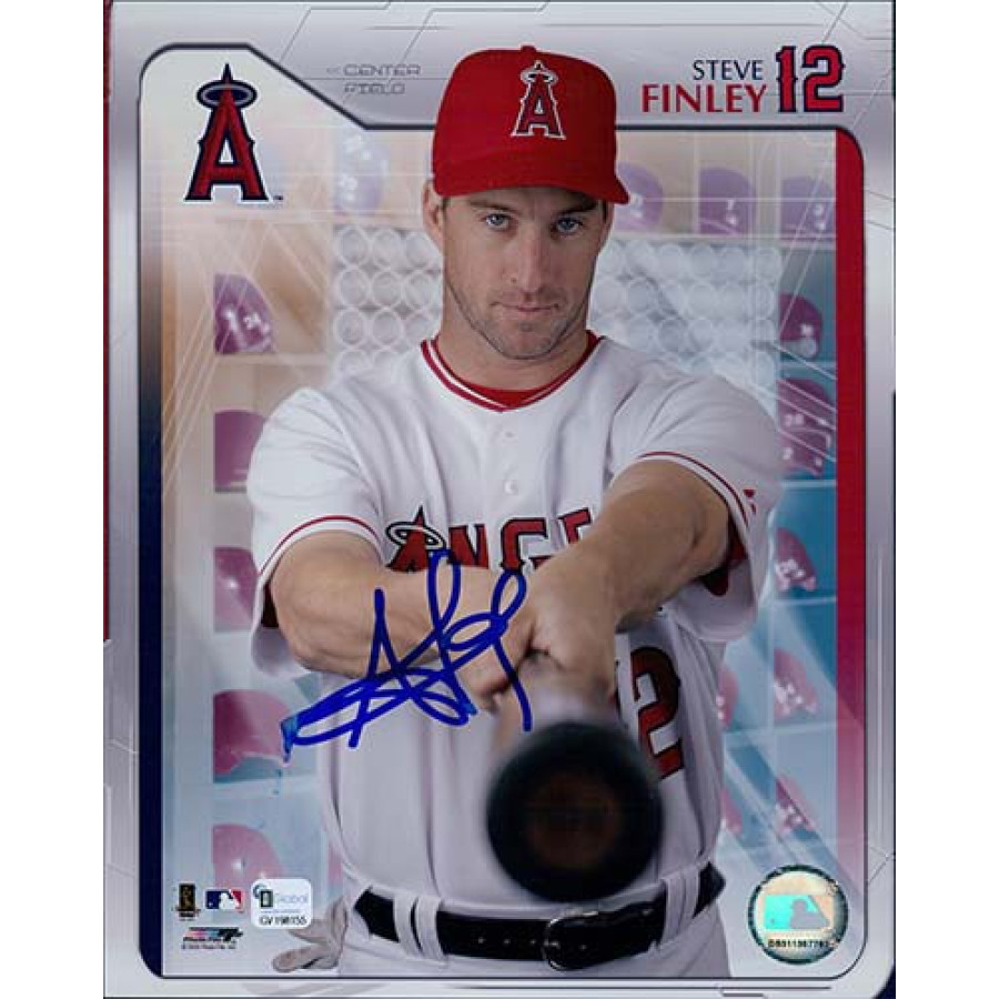Signed Steve Finley Anaheim Angels 8x10 glossy photo in blue sharpie. The beginning of the signature has a slight smudge to it. This item has been certified by Global Authentication (GAI) and will come with a sticker on the item and matching card.