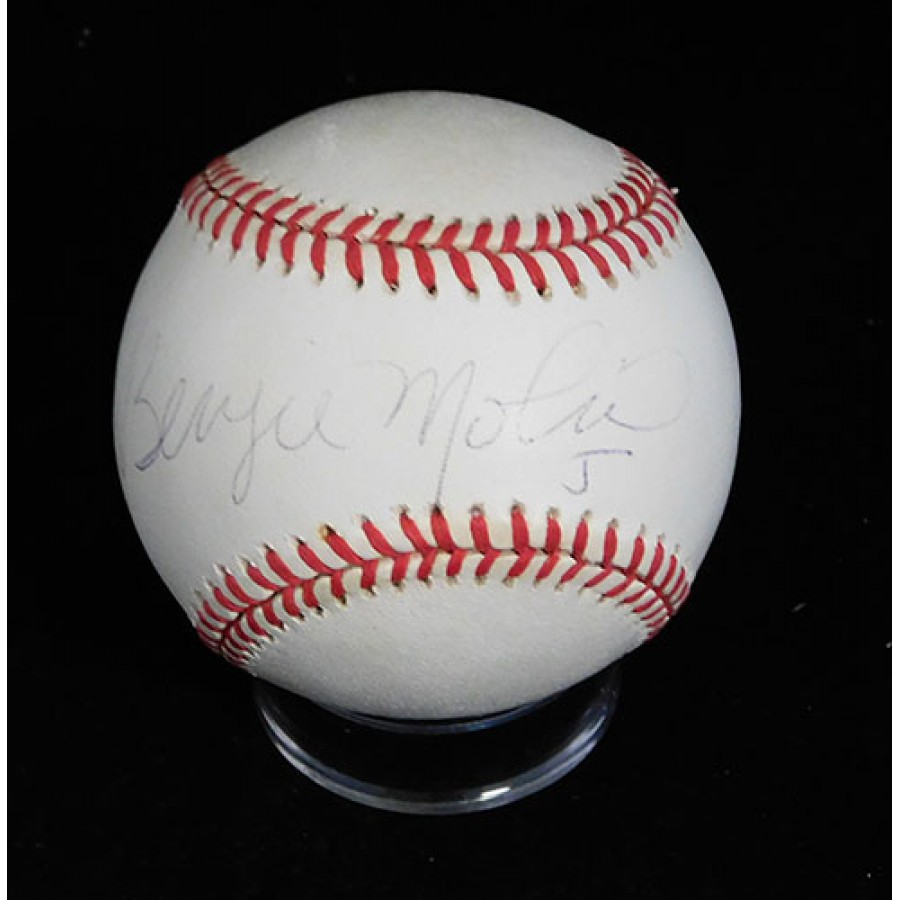 Signed Benjie Molina Official American League Baseball in blue pen on the sweet spot. The signature has faded and the ball has very light toning. This item has been certified by James Spence Authentication (JSA) with sticker affixed to item and matching card.