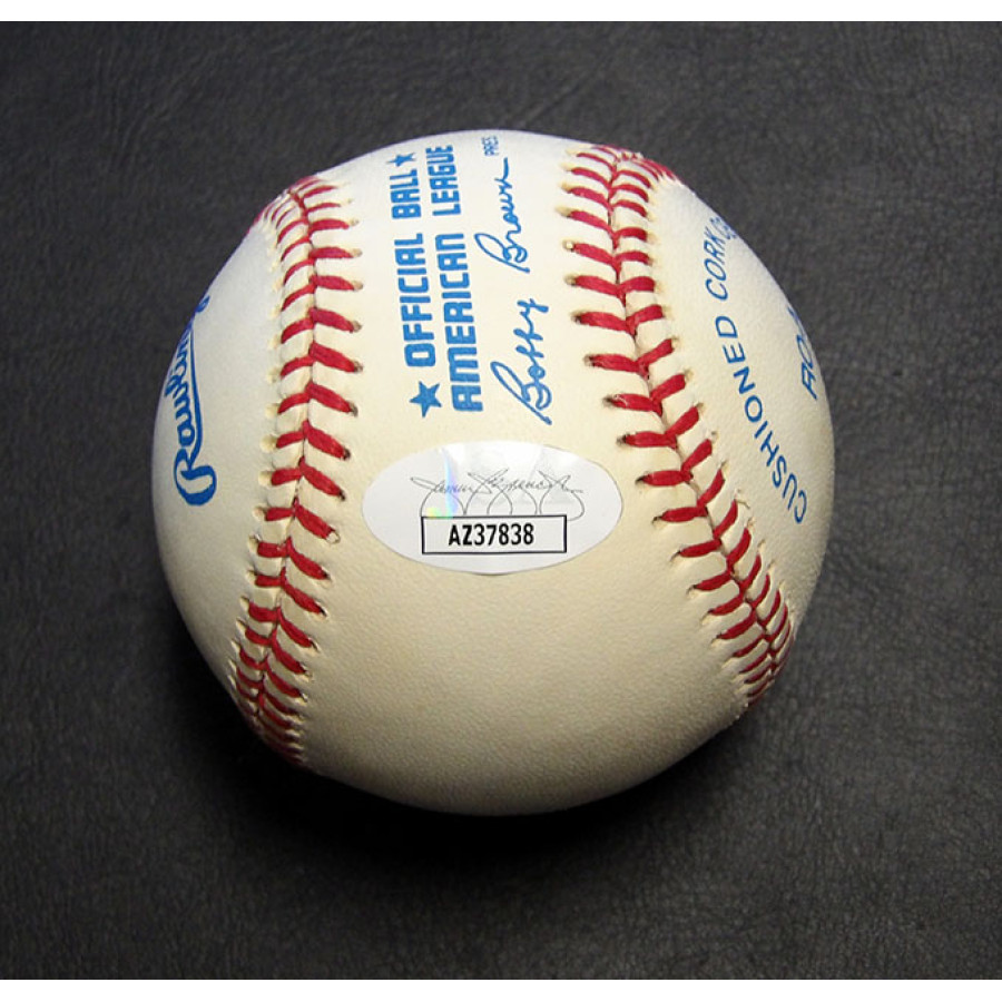 Signed Brian Anderson Rawlings Official American League Baseball in blue ink on the sweet spot. The ball does have some toning/spotting to it. This item has been certified by James Spence Authentication (JSA) with sticker affixed to item and matching card.