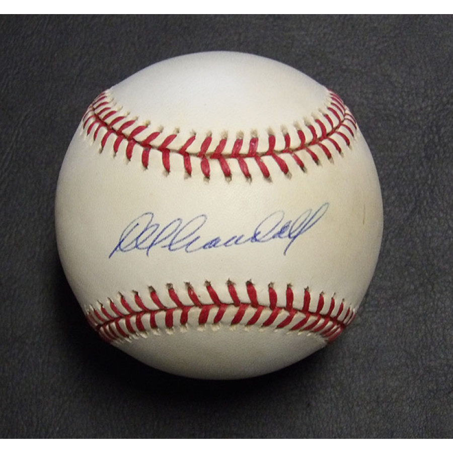 Signed Del Crandall official Rawlings National League baseball in blue pen on the sweet spot. The ball has light toning/spotting to it. This item has been certified by James Spence Authentication (JSA) with sticker affixed to item and matching card.