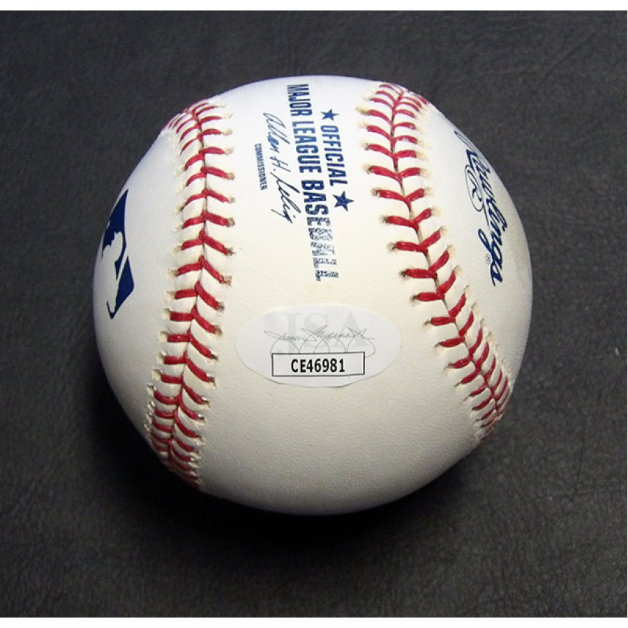 Signed Julio Borbon Rawlings official Major League Baseball in blue pen on the sweet spot. The ball has some light toning to it. This item has been certified by James Spence Authentication (JSA) with sticker affixed and matching card.