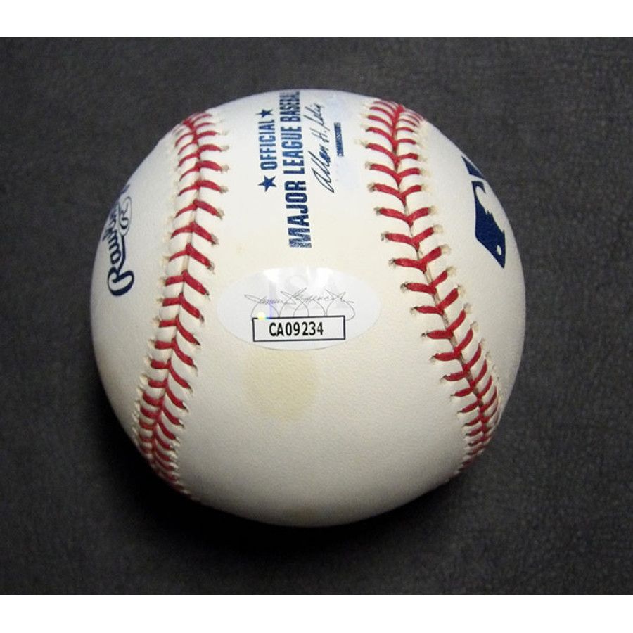 Signed Matt Palmer official Rawlings Major League Baseball in blue pen on the sweet spot. The ball has some light toning/spotting and some white ink on the back side. This item has been certified by James Spence Authentication (JSA) with sticker affixed to item and matching card.