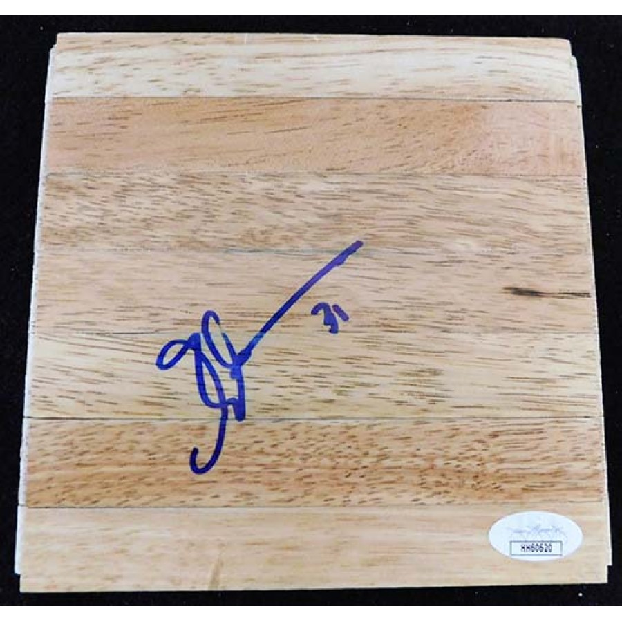 Signed Alaa Abdelnaby 6x6 floorboard in blue sharpie. This item is certified by James Spence Authentication (JSA) with sticker affixed to item and matching card.
