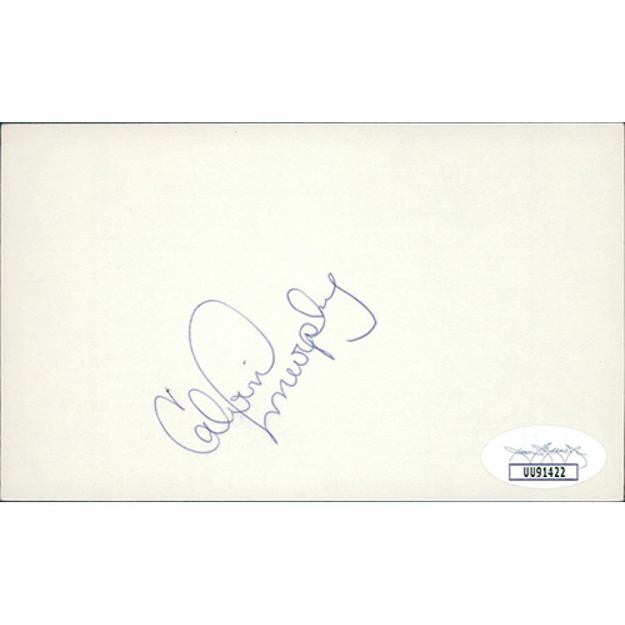 Signed Calvin Murphy 3x5 Index Card in blue pen. This item has been certified by James Spence Authentication (JSA) with sticker on item and matching card.
