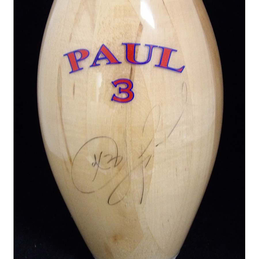 Signed Chris Paul Los Angeles Clippers bowling pin in black ink. The signature is light.