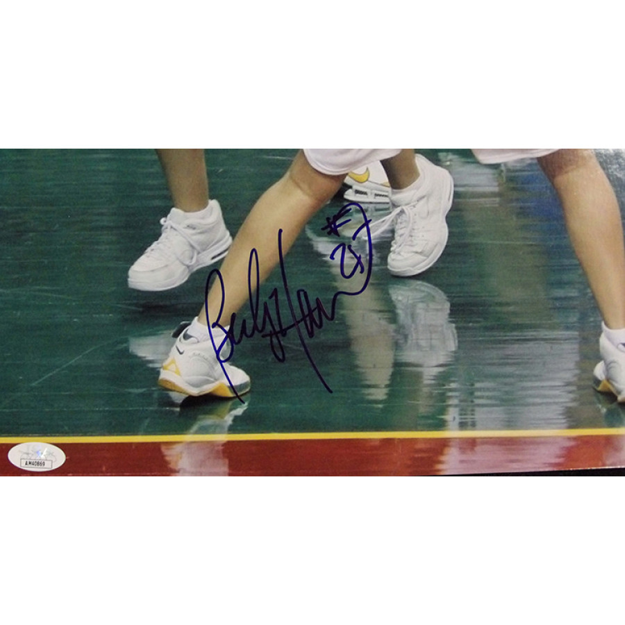 Signed Becky Hammon New York Liberty 12x18 glossy finish photo in blue sharpie. The photo has some light kinks. This item has been certified by James Spence Authentication (JSA) with sticker affixed to item and matching card.