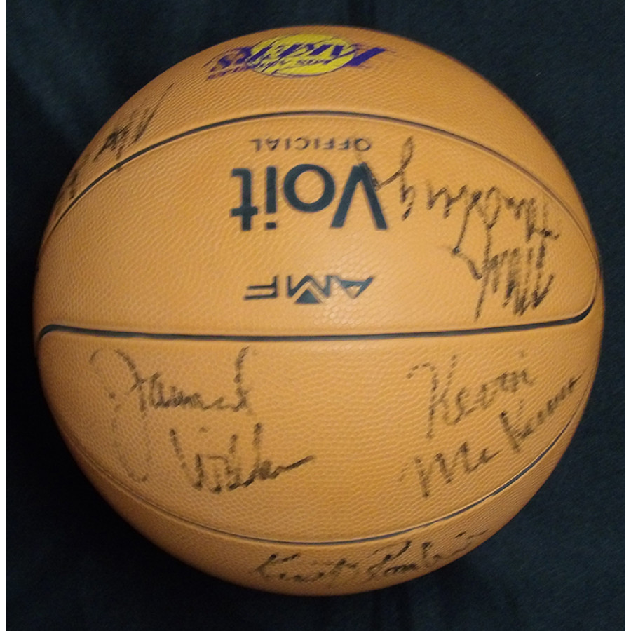 Signed 1981-82 Los Angeles Lakers team signed full size Voit basketball in black sharpie by all 10. Players include Kareem Abdul-Jabbar, Jamaal Wilkes, Michael Cooper, Jim Brewer, Mark Landsberger, Mike McGee, Eddie Jordan, Kurt Rambis and Kevin McKenna. The Magic Johnson signature has been deemed clubhouse. This item has been certified by James Spence Authentication (JSA) with letter of authenticity.