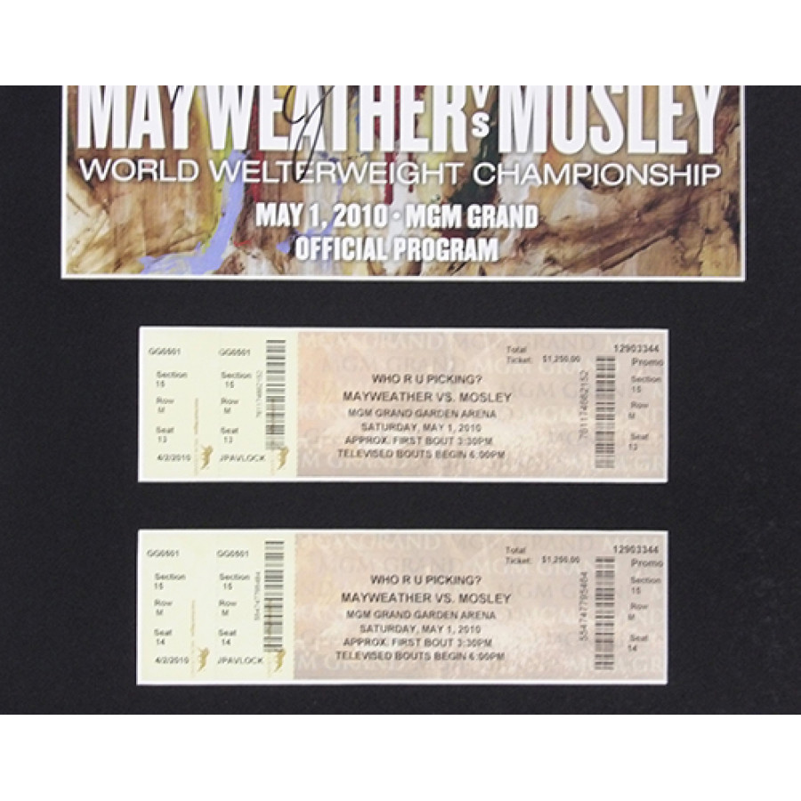 Floyd Mayweather Jr. Sugar Shane Mosley Signed Matted Program & Tix PSA Authen