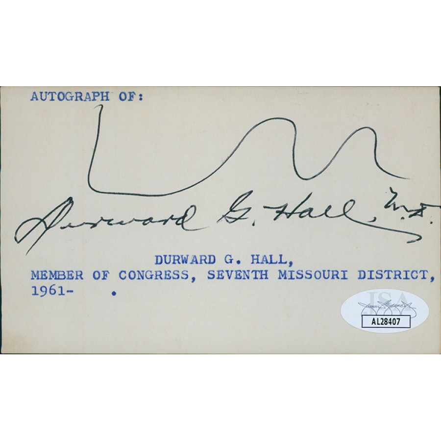Durward Hall Missouri Congressmen Signed 3x5 Index Card JSA Authenticated