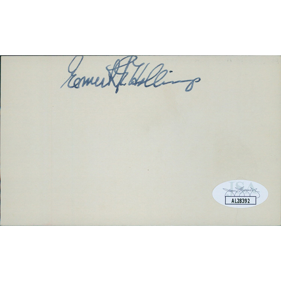 Signed Ernest Hollings 3x5 index card in black ink. This item has been certified by James Spence Authentication (JSA) with sticker affixed to item and matching card.