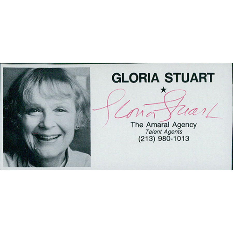 Signed Gloria Stuart 2x4 Directory Cut in red ink. This item has been certified by James Spence Authentication (JSA) with sticker affixed to item and matching card.