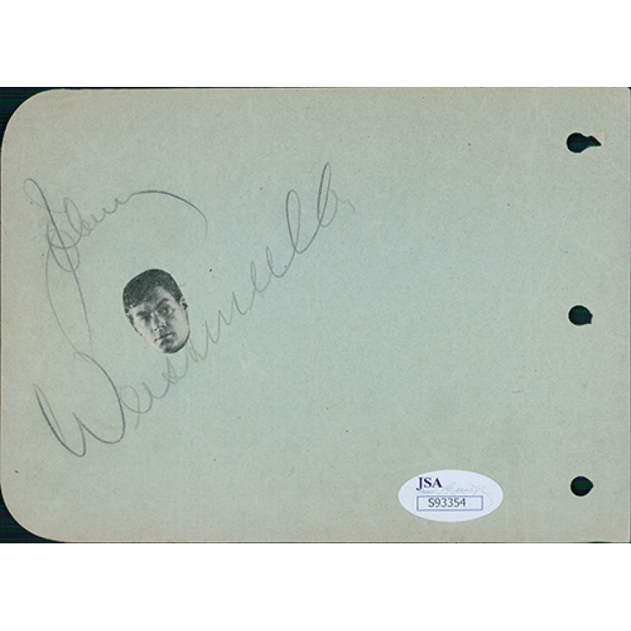 Johnny Weissmuller Actor Signed 4.5x6 Album Page JSA Authenticated