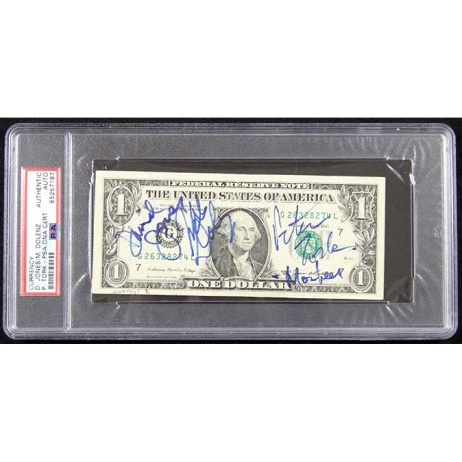 The Monkees Signed One Dollar Bill Currency PSA Authenticated Davy Peter Micky