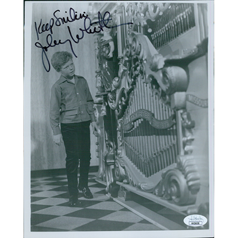 Signed Johnny Whitaker 8x10 glossy photo in black ink with inscription "Keep Smilin". This autograph has been certified by James Spence Authentication (JSA) with sticker affixed to item and matching card.