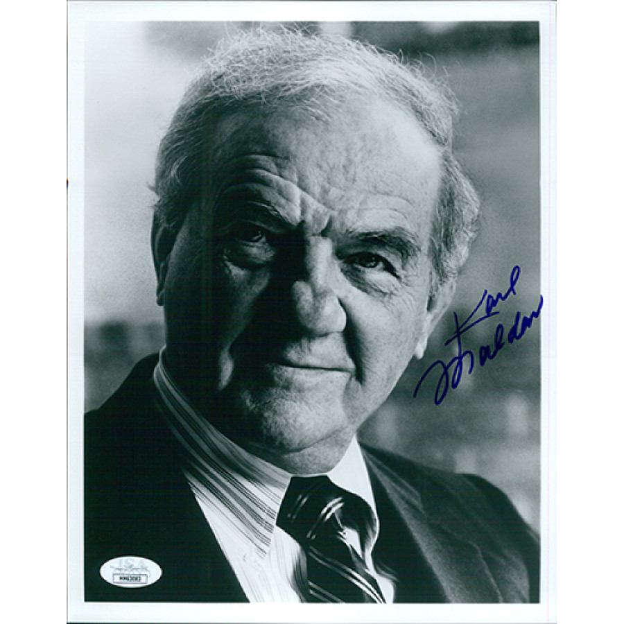 Signed Karl Malden 8x10 glossy finish promo photo in blue sharpie. This item has been certified by James Spence Authentication (JSA) with sticker affixed to item and matching card.