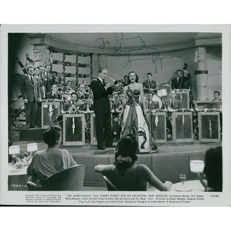 Signed Tommy Dorsey 8x10 glossy Original Still promo photo in blue ink personalized "To Johnny". This item has been certified by James Spence Authentication (JSA) with sticker affixed to item and matching card.