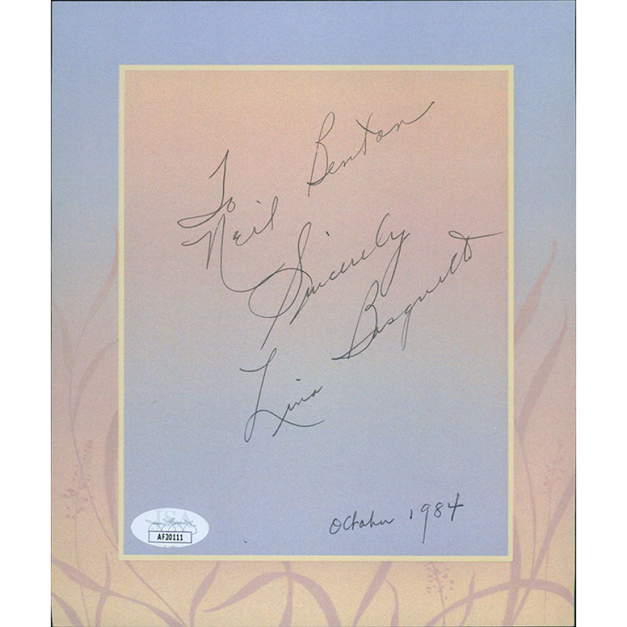 Signed Lina Basquette 6.5x8 stationary note page in black ink personalized "To Neil Benton". This item is certified by James Spence Authentication (JSA) with sticker affixed to item and matching card.