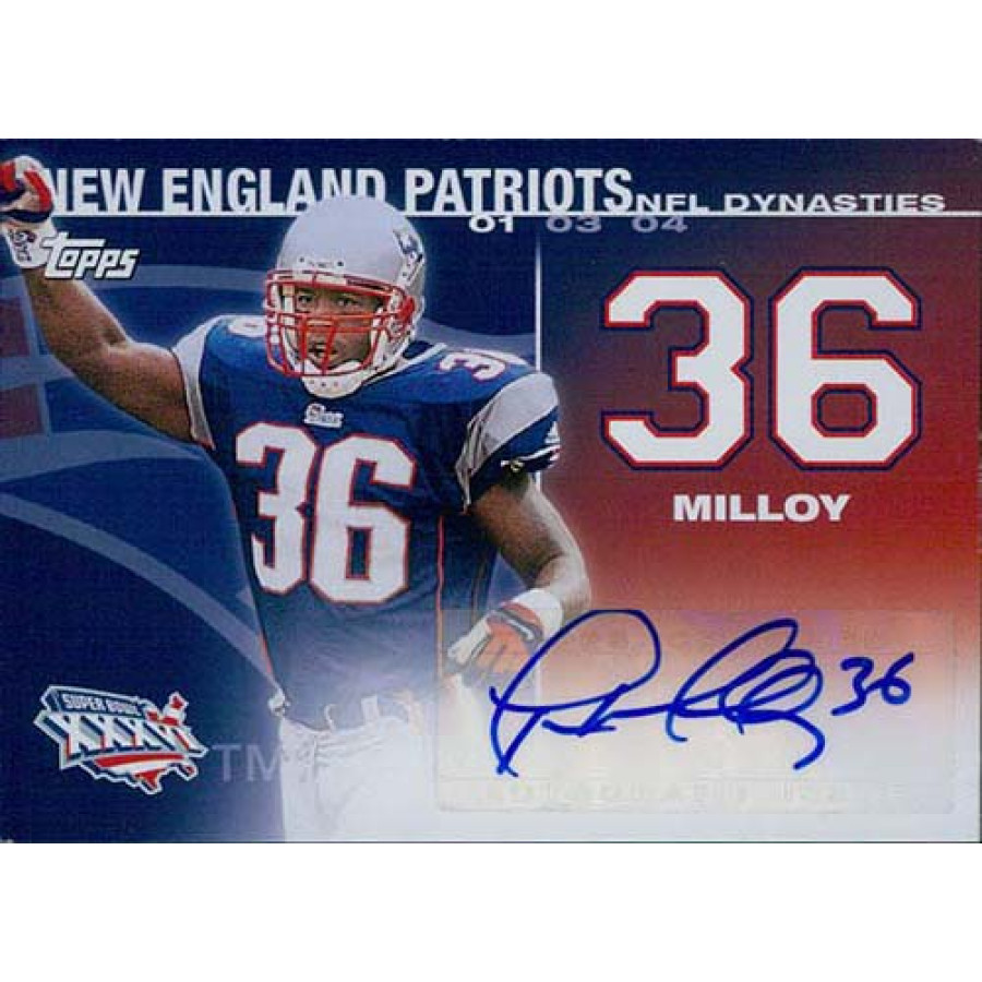Lawyer Milloy New England Patriots Signed 2008 Topps NFL Dynasties Football Card #DYNA-LM. This is numbered 51 of 500.