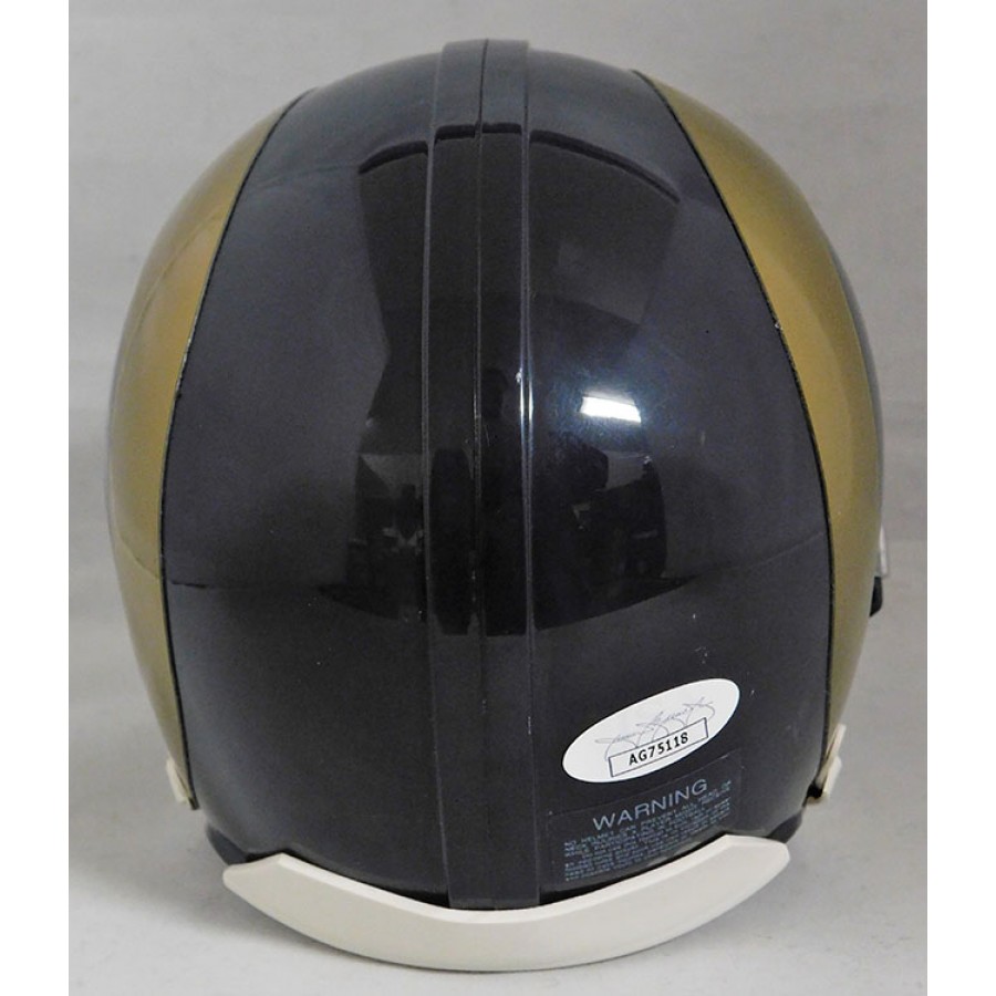 Signed Chase Reynolds Los Angeles Rams Riddell Mini Helmet in gold ink. The signature is light. This item is certified by James Spence Authentication (JSA) with sticker affixed to item and matching card.