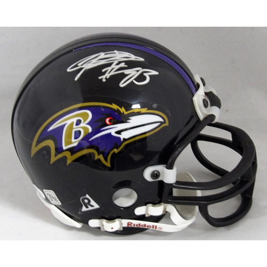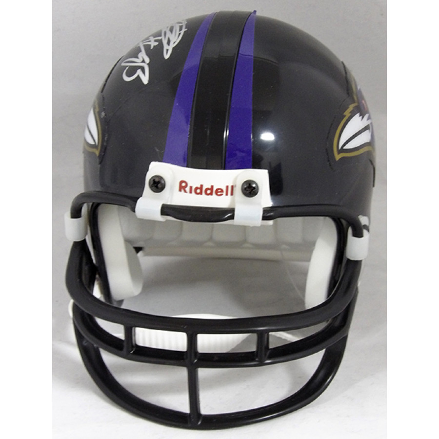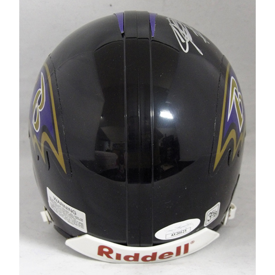Signed Patrick Johnson Baltimore Raven Riddell Mini Helmet in silver sharpie. This item is certified by James Spence Authentication (JSA) with sticker affixed to item and matching card.