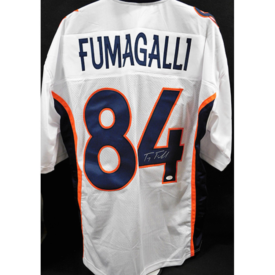 Signed Troy Fumagalli Denver Broncos Custom Jersey in silver ink on the back number. This comes witnessed and certified by James Spence Authentication (JSA) with sticker attached to item and matching card.