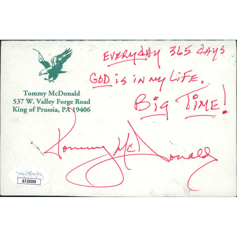 Tommy McDonald Philadelphia Eagles Signed Thank You Card JSA Authenticated