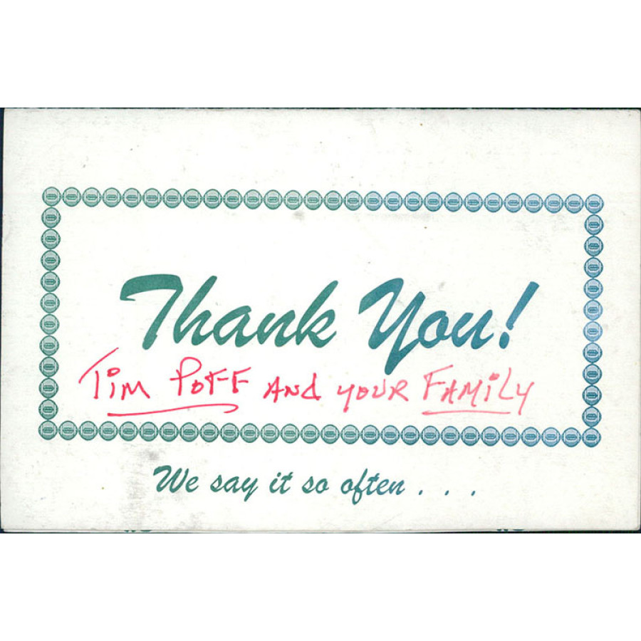 Signed Tommy McDonald Thank You Card in red ink. The card measures about 4x5.5 inches when closed. Does have some wearing to it. This item has been certified by James Spence Authentication (JSA) with sticker on item and matching card.