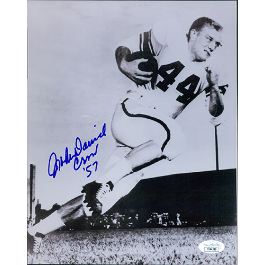 Signed John David Crow Texas A&M 8x10 glossy photo in blue sharpie with "'57" inscription. This item is certified by James Spence Authentication (JSA) with sticker affixed to item and matching card.