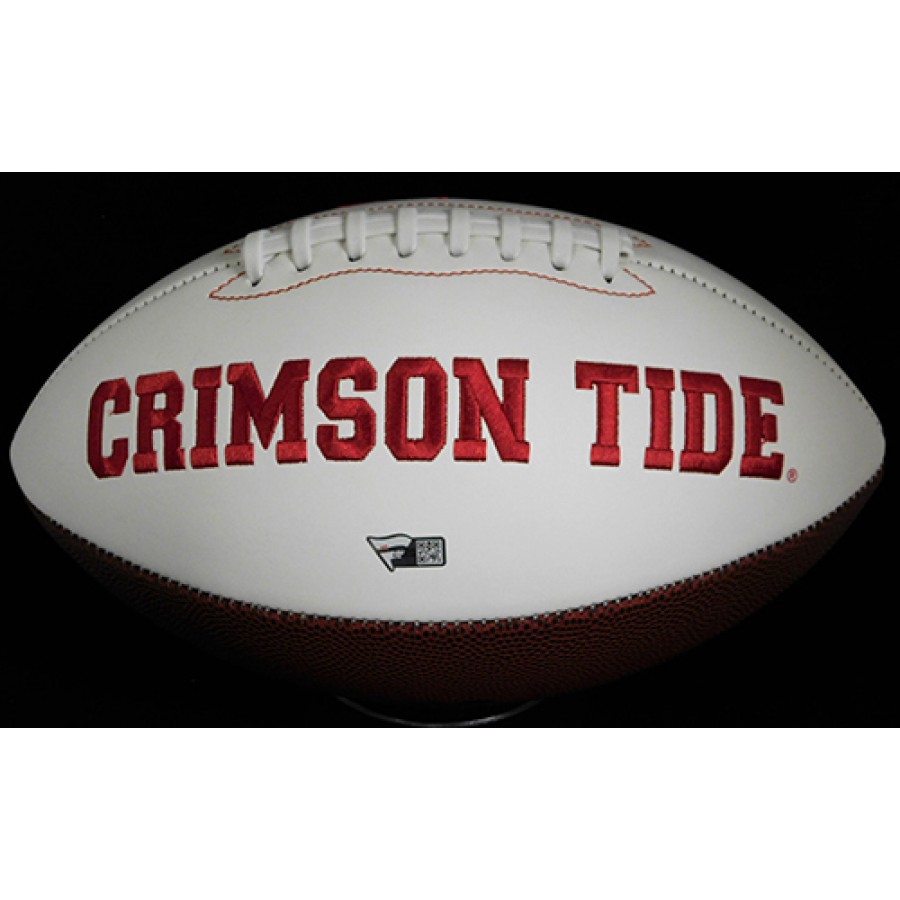 Signed Dylan Moses Full Size White Panel Football in black sharpie with "Roll Tide" inscription. The signature does have some light bleeding. This has been certified by Fanatics Authentic with sticker affixed to item.