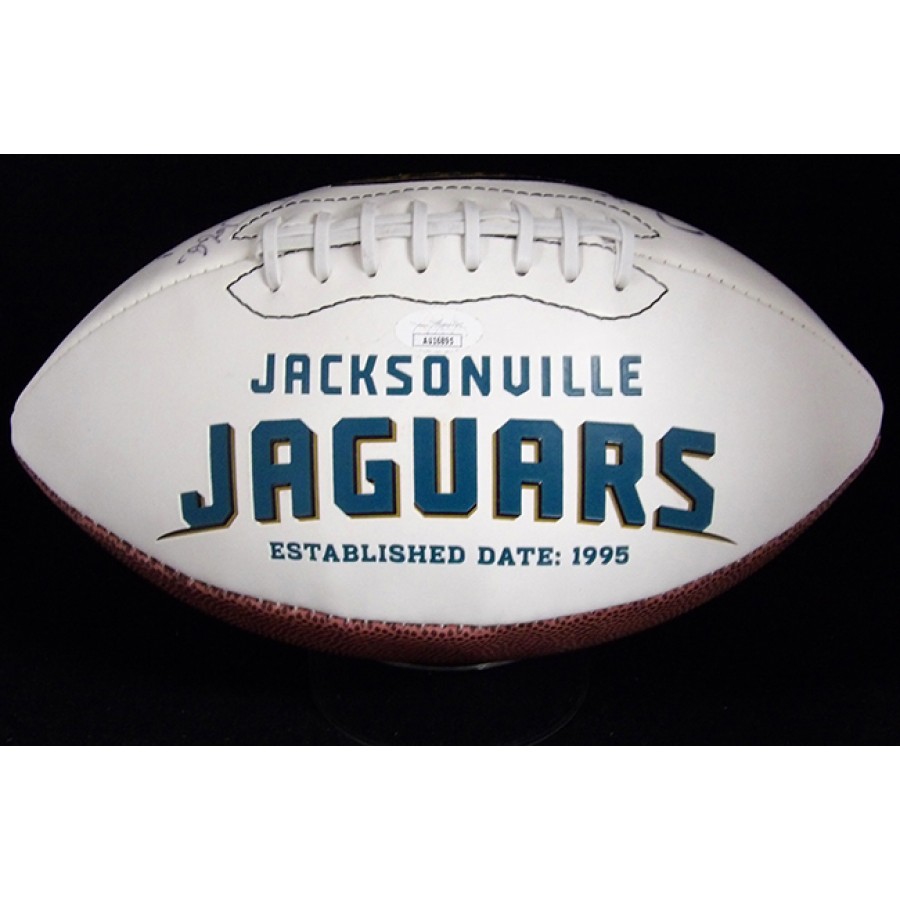 Signed Paul Frase Jacksonville Jaguars Logo White Panel Full Size Football in black sharpie personalized "To Jeff". This item has been certified by James Spence Authentication Service (JSA) with sticker affixed to item and matching card.