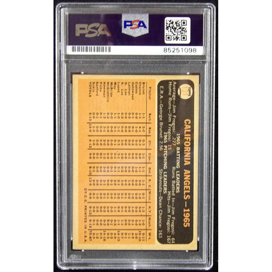 Signed Dean Chance California Angels 1966 Topps Baseball Card #131 in blue ink. This item is certified by Professional Sports Authenticator (PSA) encapsulated.