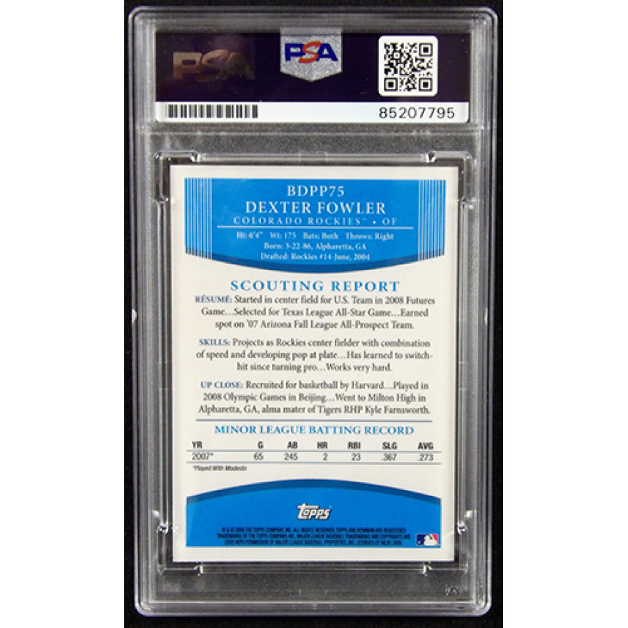 Dexter Fowler Signed 2006 Bowman Draft Picks & Prospects Relic Card #BDPP75 PSA