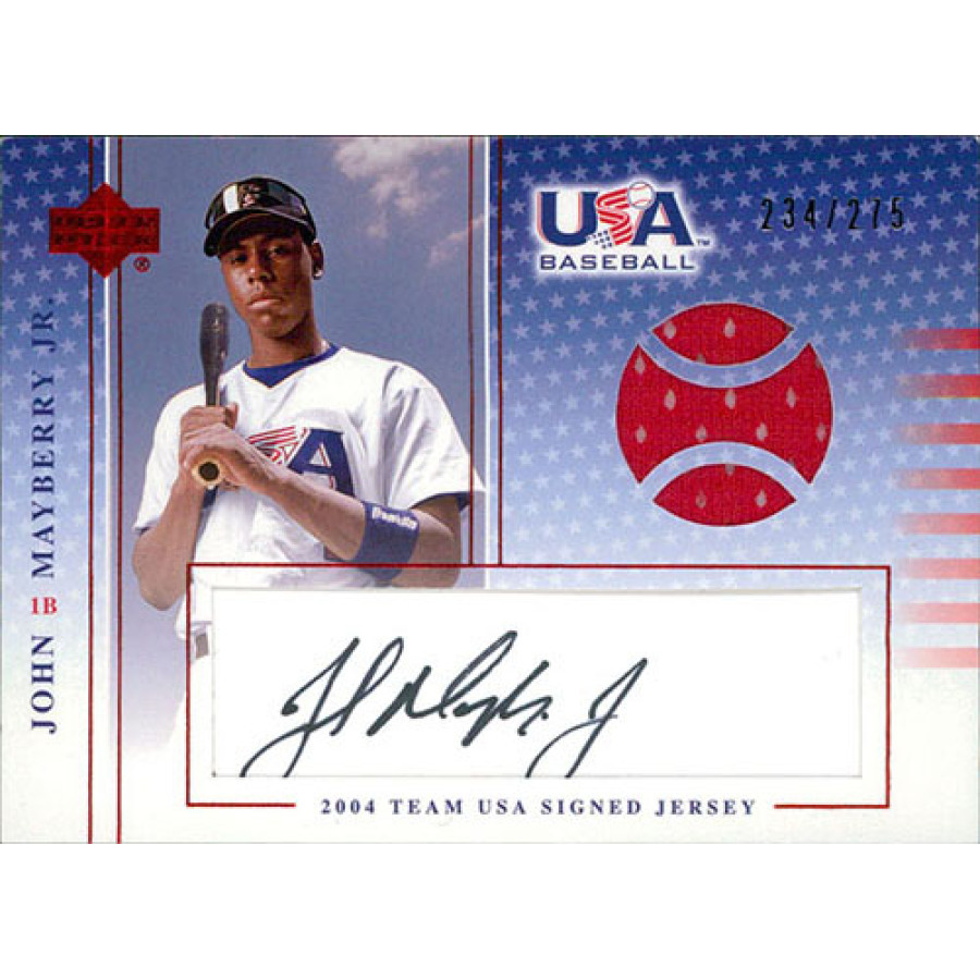 John Mayberry Jr Signed Upper Deck 2004 USA Baseball Team Jerseys Baseball Card #J-32. This is numbered 234 of 275.