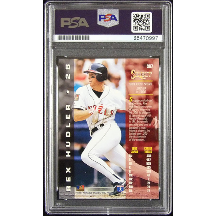 Signed Rex Hudler California Angels 1994 Select Baseball Card #367 in blue sharpie. This item is certified by Professional Sports Authenticator (PSA) encapsulated.