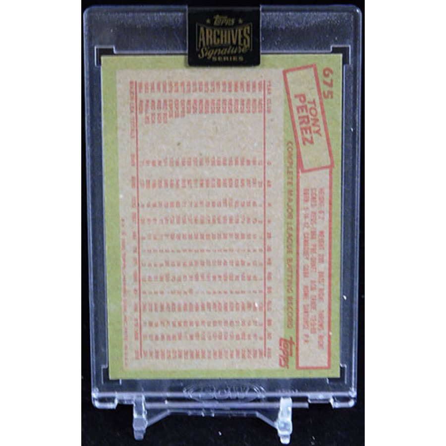 Signed Tony Perez Cincinnati Reds 2021 Topps Archives Signatures Series Baseball Card #675 in blue ink. This is numbered 51 of 84.