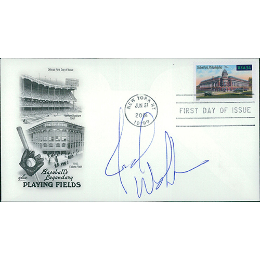 Signed Jarrod Washburn Baseball's Legendary Playing Fields First Day Issue in blue pen. This item has been certified by James Spence Authentication (JSA) with sticker on item and matching card.